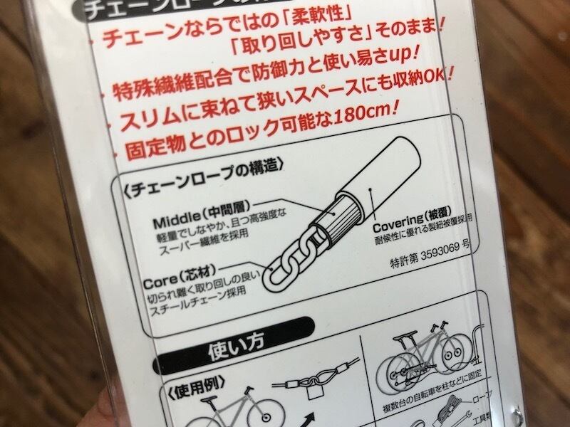 ・ロープ外側が繊維に覆われているので施錠対象物をキズ付けから保護します。